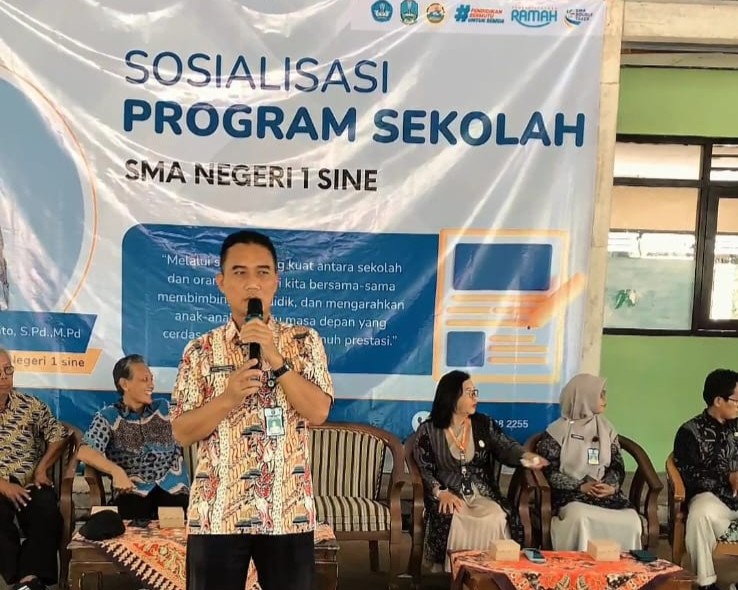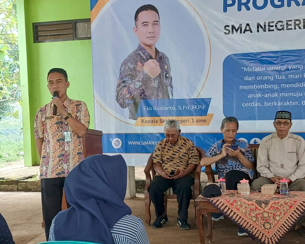 SINE – SMAN 1 Sine (SMANSI) sukses menggelar Rapat Pleno Sosialisasi Program Sekolah pada Kamis, 2 April 2026. Pertemuan penting ini dihadiri langsung oleh jajaran pengurus komite serta seluruh orang tua/wali murid kelas X dan XI. Pertemuan ini bertujuan memperkuat kolaborasi antara pihak sekolah dan keluarga dalam mendukung visi pendidikan tahun ajaran baru. Dalam pertemuan ini, Kepala SMAN 1 Sine, Bapak Eko Budianto, S.Pd, M.Pd., memaparkan sejumlah kebijakan strategis guna meningkatkan kedisiplinan dan kualitas belajar siswa.